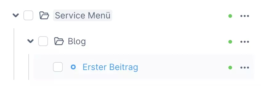 In our example, we create the blog in the service menu because we want to link it there later.