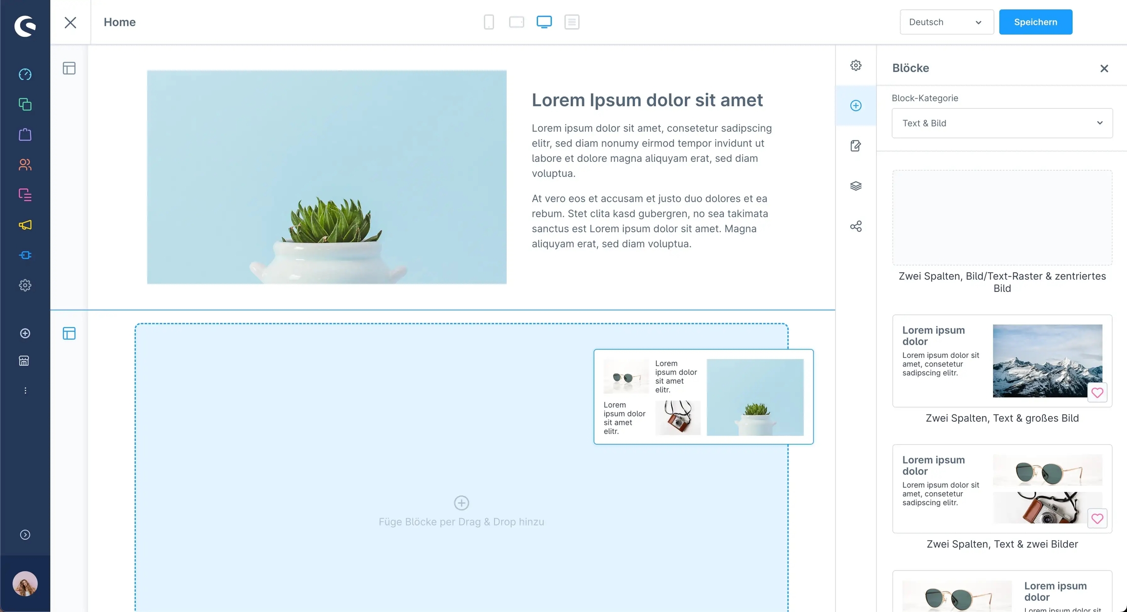 Zwei Spalten, Bild/Text & zentriertes Bild