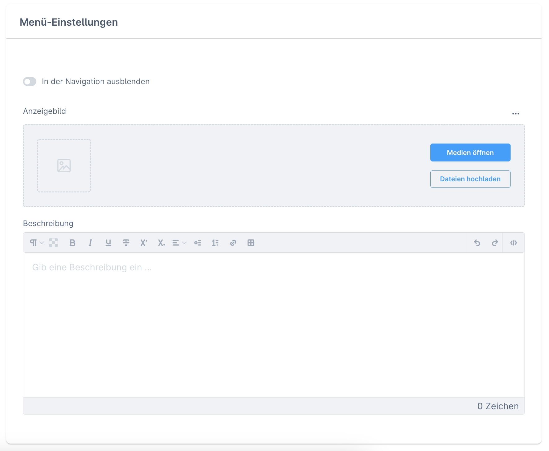 Damit du mit der Bild-Darstellung aus einer Kategorie auf die entsprechenden Unterkategorien verlinken kannst, ist immer ein Anzeigebild für die jeweiligen Unterkategorien notwendig. Verknüpfe daher unter "Kataloge > Kategorien > [Kategorie] > Menü-Einstellungen > Anzeigebild" deine Bilder, die du verwenden möchtest.