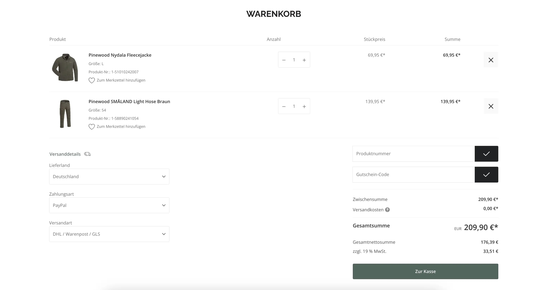 Der Warenkorb lässt sich als Start des Checkouts bezeichnen und bietet dir nachstehende Konfigurationsmöglichkeiten.