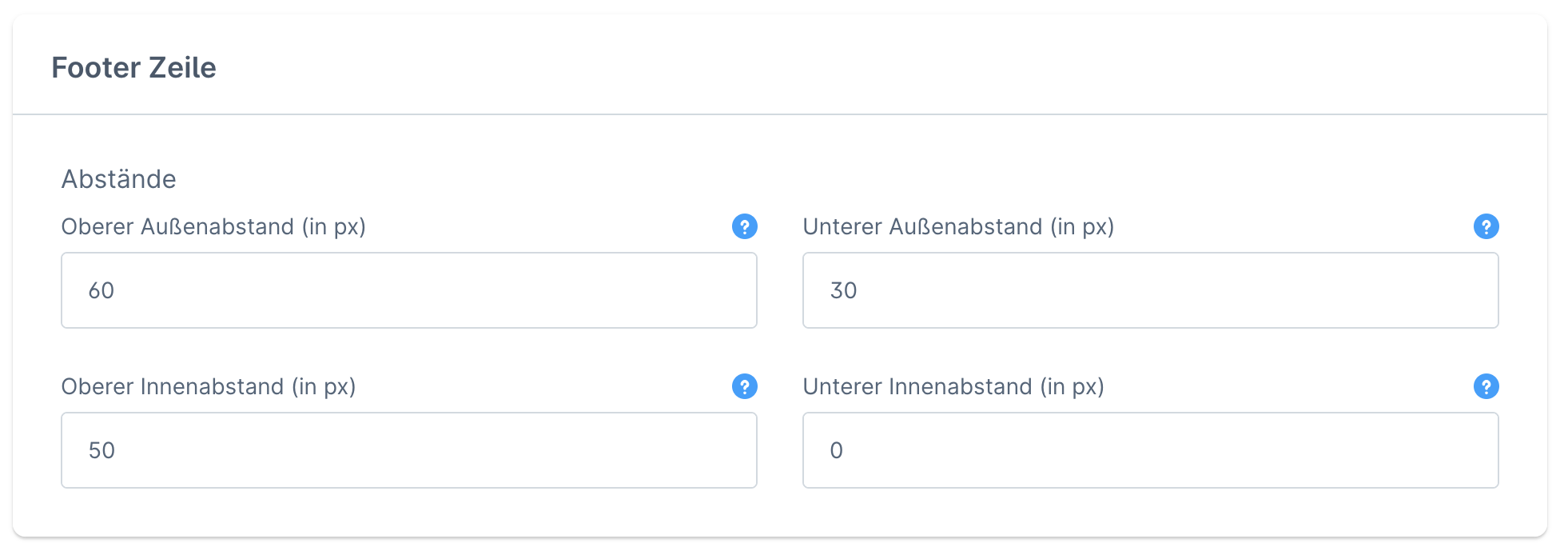Definiert den Abstand zwischen dem unteren Rahmen der Footer Zeile und dem [Footer Abschluss](https://docs.atloss.de/en/theme-configuration/footer/completion).