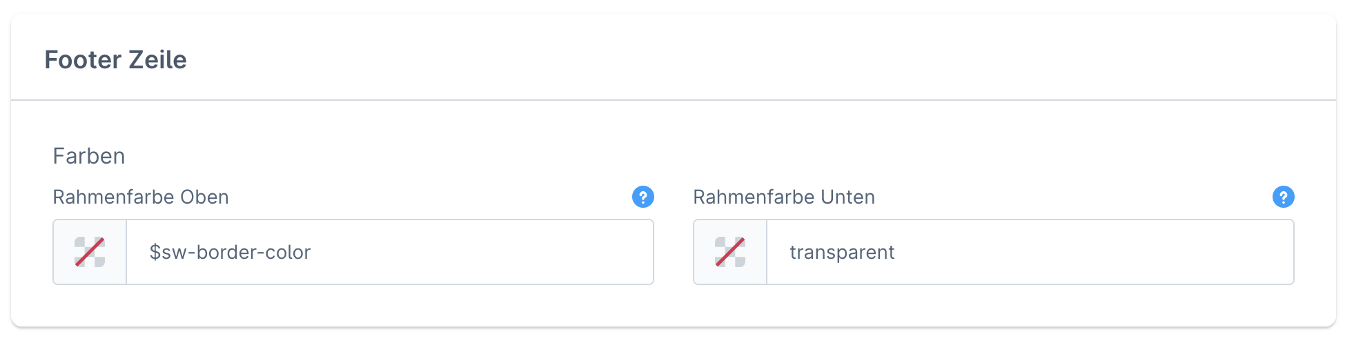 Lege die obere Rahmenfarbe der Footer Zeile fest. Standardmäßig wird hier die globale [Rahmenfarbe](https://docs.atloss.de/en/general/theme-colors#rahmen) über eine [Variable](https://docs.atloss.de/en/academy/technical-terms/variable) eingebunden. Solltest du keinen Rahmen verwenden wollen, kannst du auch den Wert "transparent" im Feld hinterlegen.