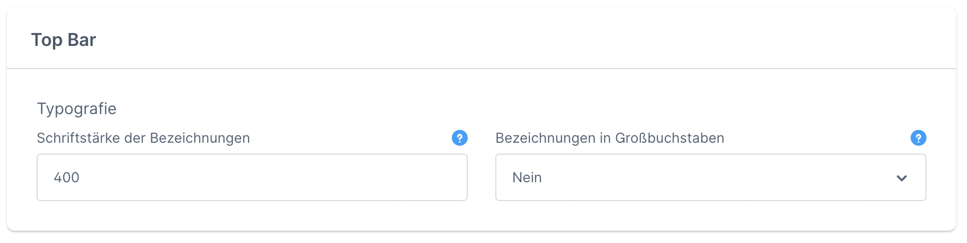 Definiert die Schriftstärke aller Bezeichnungen in der Footer Top Bar. Je nach Schriftart stehen dir hierbei folgende Konfigurationsoptionen zur Verfügung: