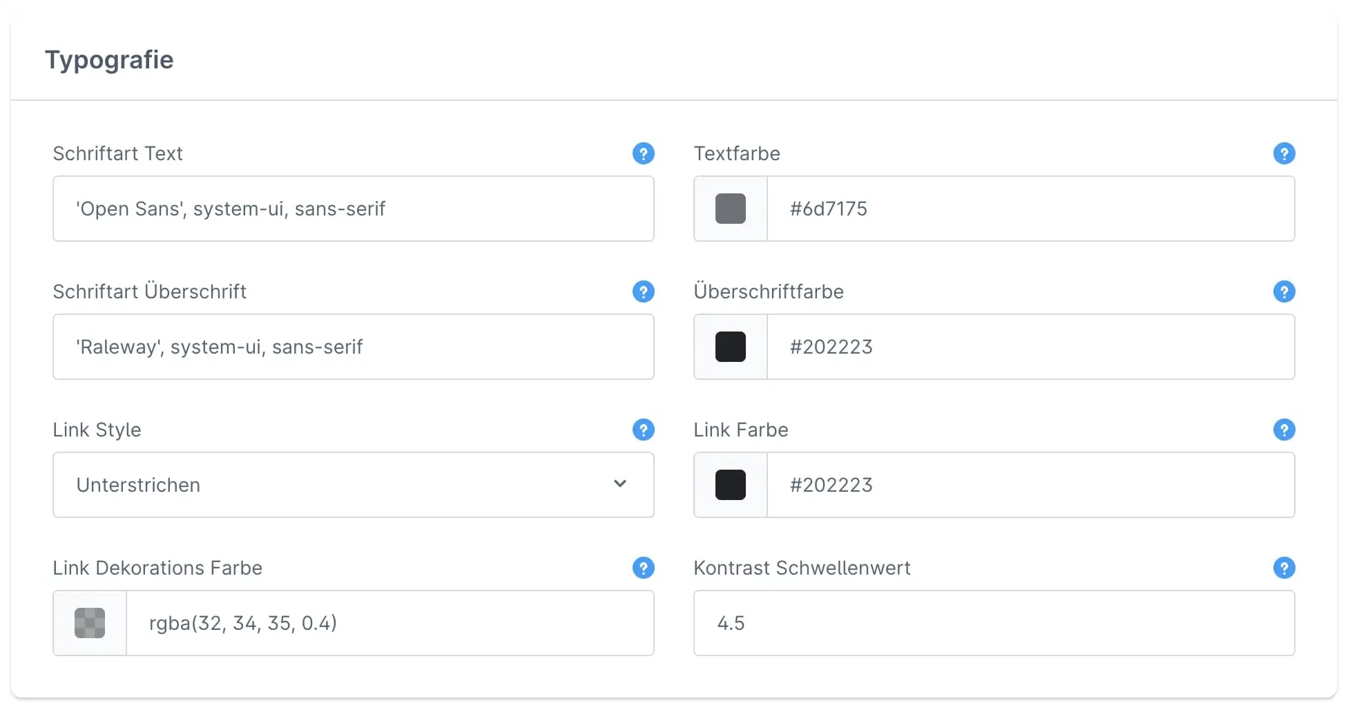 In this section, you will find everything related to the typeface of your online shop. Here, you can customize continuous text, headings, and links according to your preferences.