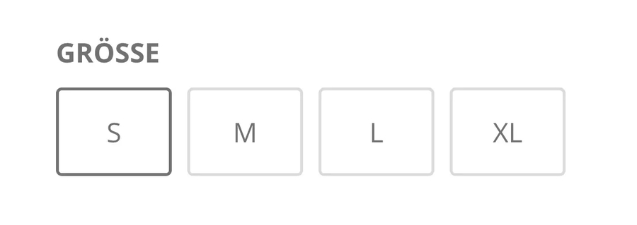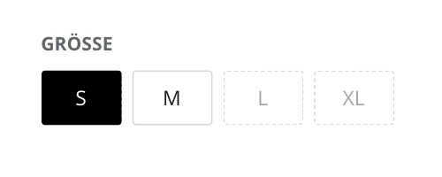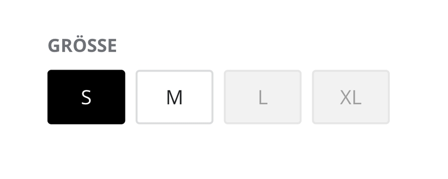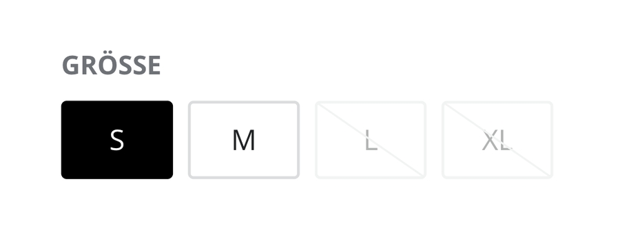Über jeder Variantenausprägung wird ein Titel wie bspw. "Farbe", "Größe", etc. angezeigt. Dieser wird nachfolgend als Gruppentitel bezeichnet.