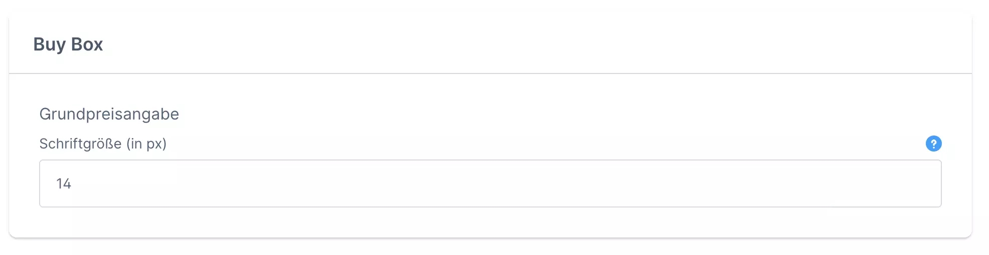 Passe die Schriftgröße der Grundpreisangabe an. Diese kann im Produkt Modul im Tab "Spezifikationen" unter dem Abschnitt "Maße & Verpackung" pro Produkt und Variante definiert werden.