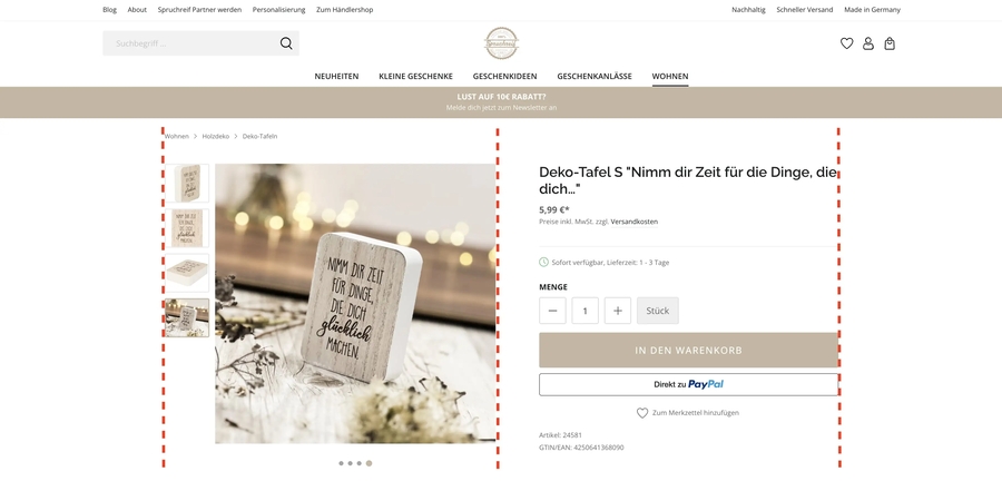 In der Regel macht es Sinn den Inhalt der Produkt Detailseite etwas schmaler zu gestalten. Andernfalls kann es vorkommen, dass Produktbilder in der Galerie unverhältnismäßig groß skaliert werden können.