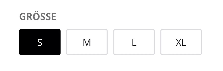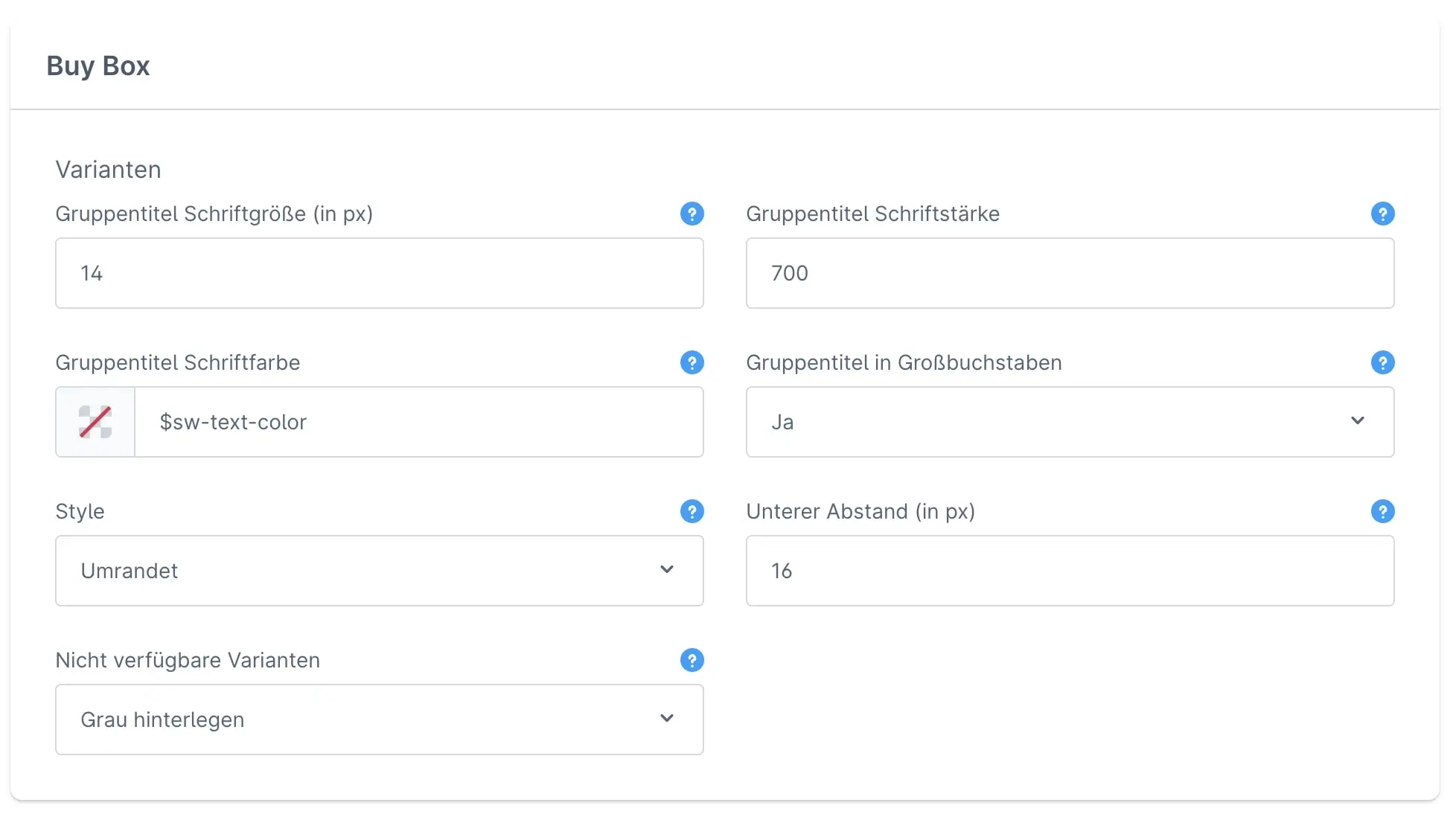 Über jeder Variantenausprägung wird ein Titel wie bspw. "Farbe", "Größe", etc. angezeigt. Dieser wird nachfolgend als Gruppentitel bezeichnet.