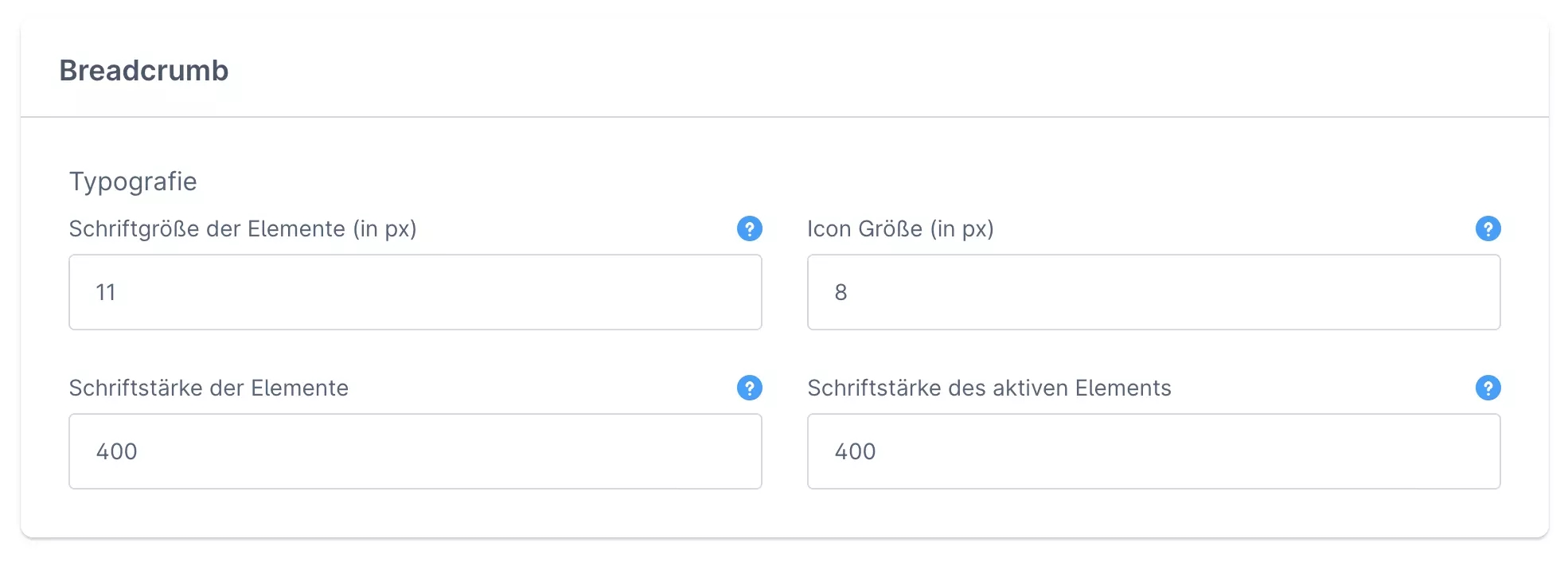Definiere die Schriftstärke der Breadcrumb Elemente. Je nach Schriftart stehen dir hierbei folgende Konfigurationsoptionen zur Verfügung: