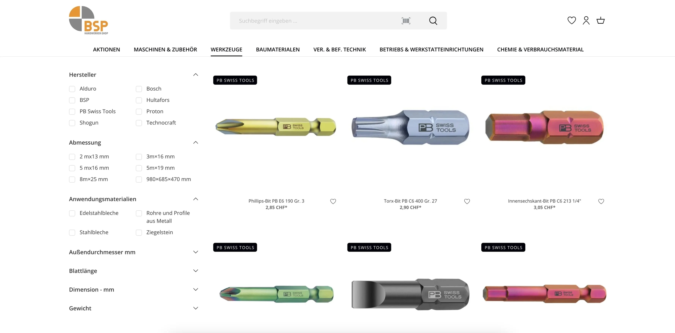 Hersteller-Filter geöffnet darstellen