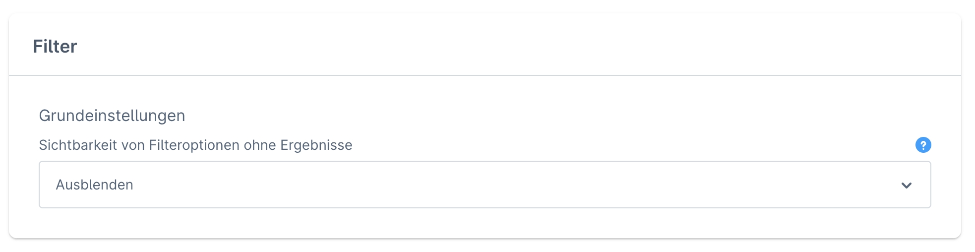 Voraussetzung für das nachfolgende Konfigurationsfeld ist, dass "Einstellungen > Produkte > Filteroptionen ohne Ergebnisse deaktivieren" aktiviert ist.