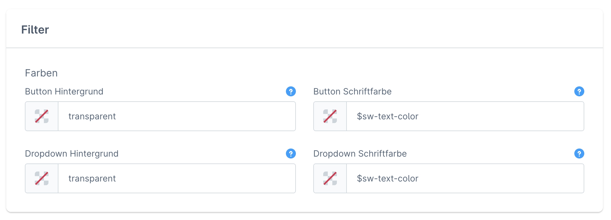Hinweis: Mit dem Wählen einer Farbe werden auf dem Filteropdown automatisch Abstände angewendet. Solltest du keine Farbe hinterlegen wollen, gebe bitte "transparent" ein.