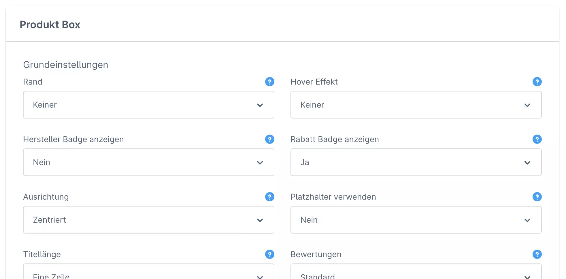 Automatisch Der Titel wird immer komplett ausgeschrieben. Hierbei kann nicht mehr garantiert werden, dass sich die Inhalte unterschiedlicher Produkt Boxen weiterhin auf derselben Höhe befinden. Gerade bei einem gewählten Rand, kann dies zu Inkonsistenz zwischen den Produkt Boxen führen.
